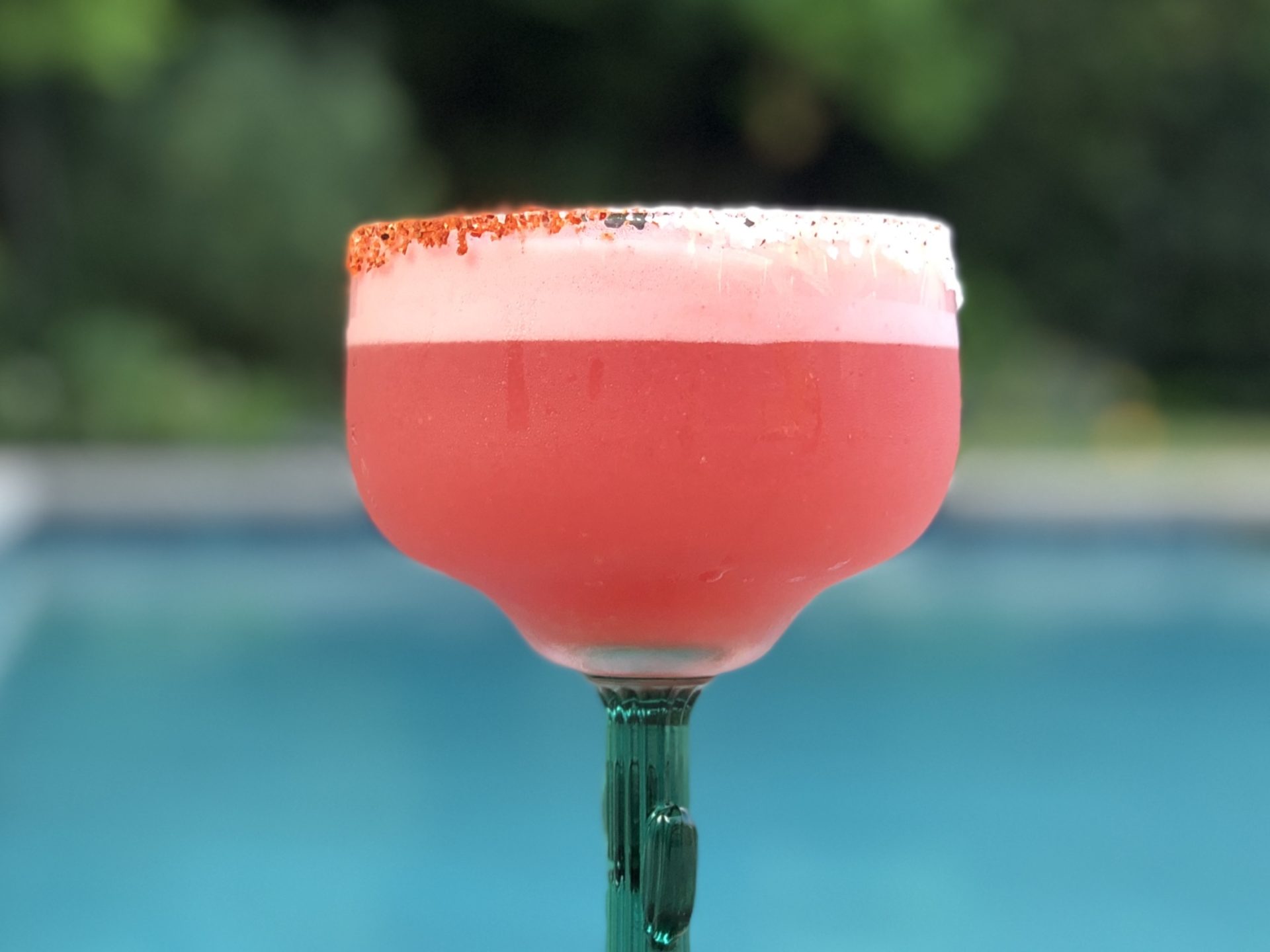 Divide drink evenly between the prepared glasses. You will likely have leftover–give it a quick pulse on the blender before topping off your drink–and remember, a pinch of Tajin on top may make that refill better than the original!